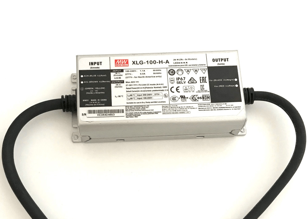 Driver LED à courant constant professionnel de 100 watts conçu pour les applications d'éclairage public avec un indice d'étanchéité IP67.